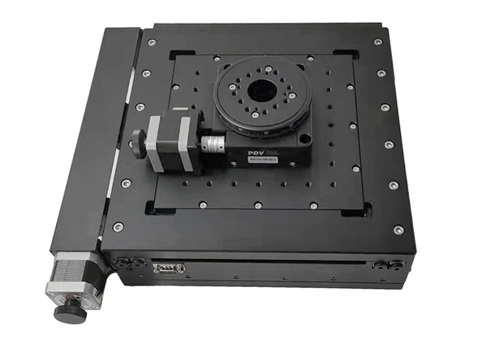 電動(dòng)整體組合臺(tái)PT-XY100、電動(dòng)旋轉(zhuǎn)臺(tái)PX110-100組合而成。