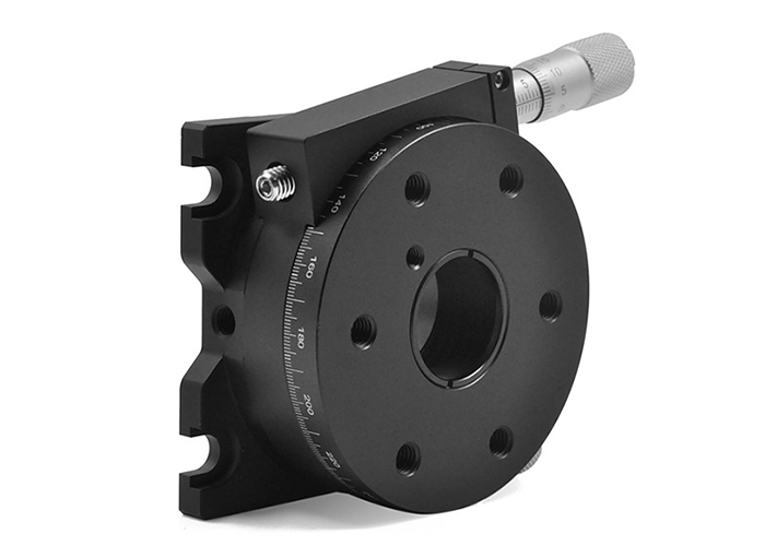 鎖定手?jǐn)Q螺絲處于未鎖定狀態(tài)時(shí),可以位于位移臺(tái)下側(cè)面,分度為1°的刻度標(biāo)記為標(biāo)準(zhǔn),360°全方位平滑、連續(xù)地手動(dòng)旋轉(zhuǎn)調(diào)節(jié)位移臺(tái)。當(dāng)手?jǐn)Q螺絲被鎖定時(shí),千分尺可以提供5°的精細(xì)調(diào)節(jié),位于下側(cè)面的游標(biāo)刻度為標(biāo)準(zhǔn),精度5弧分。