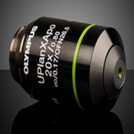 Olympus X-Line Extended Apochromat Objectives (also referred to as the UPLXAPO series) are Olympus’ next generation high performance objectives that simultaneously feature high numerical aperture (NA), broadband chromatic aberration correction, and excellent image flatness. The high numerical aperture (NA) allows for excellent light collection efficiency to better capture faint signals, enabling a shorter exposure time and higher contrast. The broad chromatic aberration correction compensates for the wavelength-dependent spatial shift of colors to achieve excellent color reproduction. These objectives also achieve high image flatness from the center to the edges of images over large fields of view (FOV), making them ideal for image stitching and quantitative image analysis. Olympus X-Line Extended Apochromat Objectives are used in demanding life science and clinical applications including pathology, fluorescence microscopy, multicolor or widefield fluorescence imaging, confocal or super resolution microscopy, and whole slide imaging.